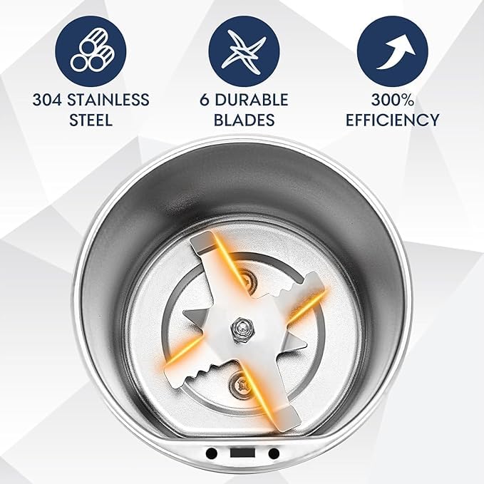 A robust 200W motor paired with razor-sharp stainless steel blades ensures fast, efficient, and uniform grinding every time. No task is too tough for this mini powerhouse.